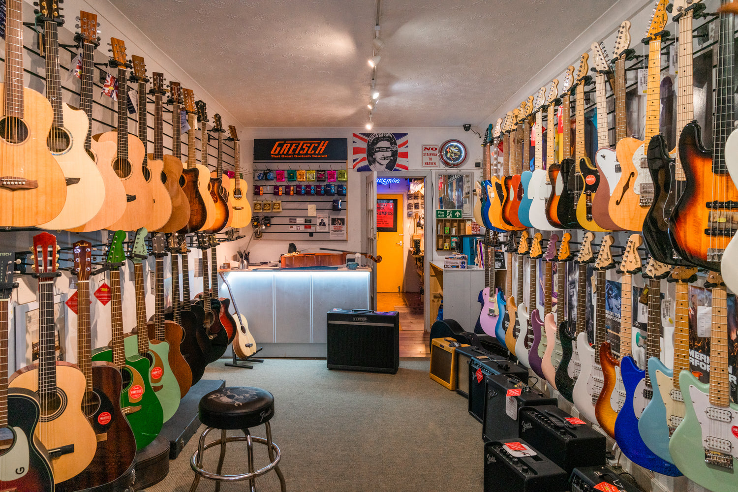A cosy shop with a wide selection of quality musical instruments, amps and accessories at internet prices. Authorised Fender, Gretsch, EVH, Jackson, Guild, Cordoba, Tanglewood, & Much More. From beginner to professional.