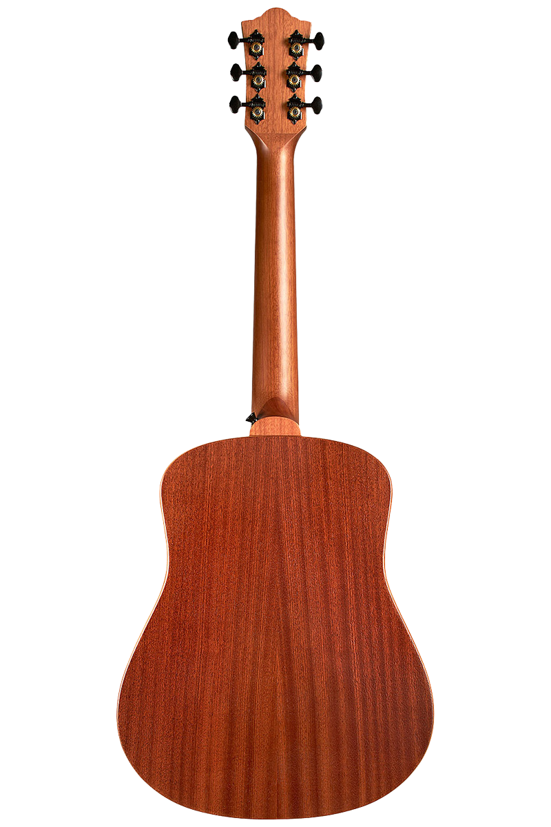 Crafted with all-Mahogany tonewoods for a rich, warm sound, the Traveler features a compact body, easy-to-play short scale length, and innovative archback design. Additional appointments include a sleek new black headstock design complemented by black hardware, a Rosewood fingerboard and bridge and an open-pore natural satin finish.