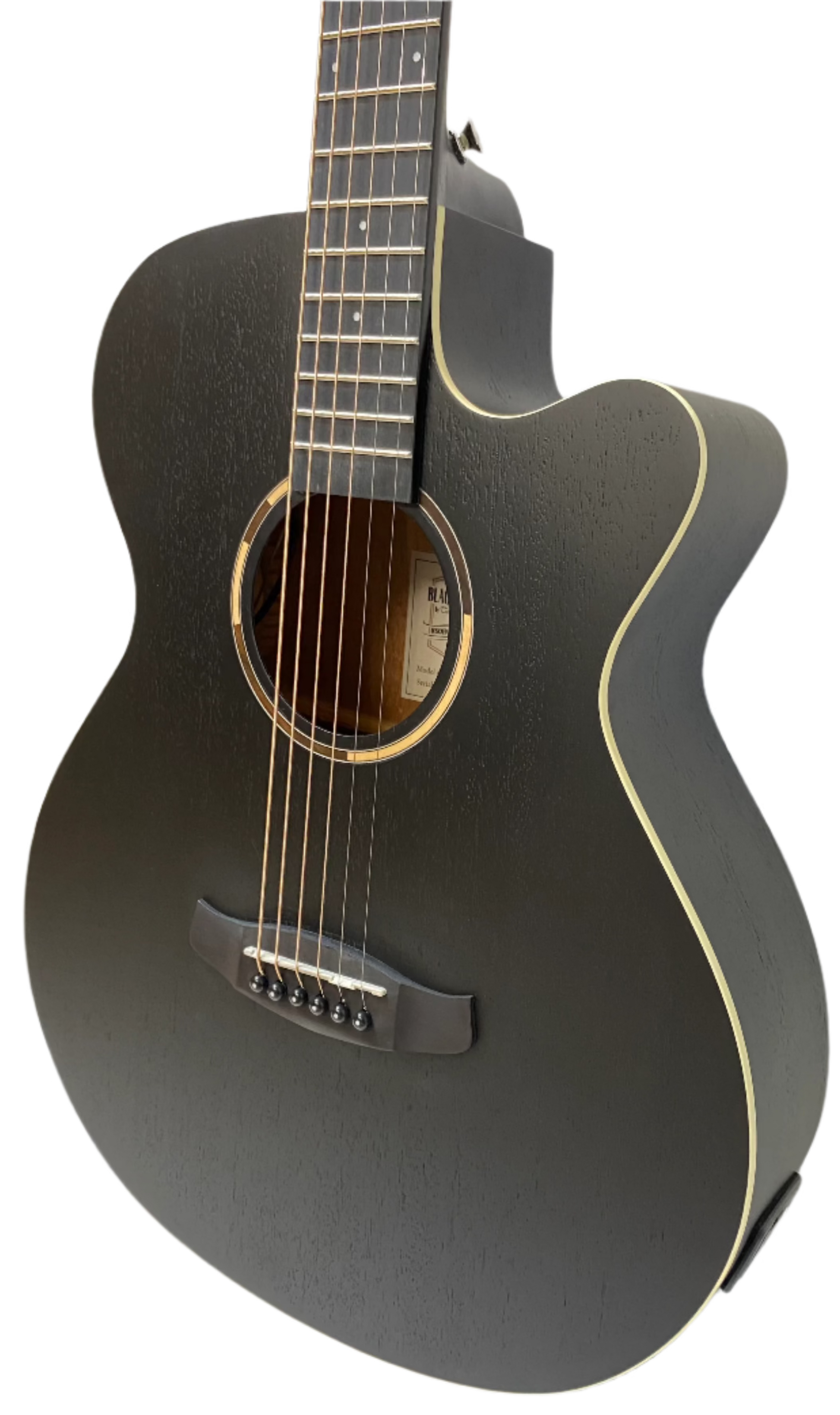 The Blackbird TWBBSFCE guitar epitomizes excellence in both form and function, offering a sublime playing experience for musicians of all levels. Boasting a Super Folk Cutaway body shape, this guitar strikes a harmonious balance between comfort and performance, allowing for easy access to the upper frets while delivering a balanced tonal response.